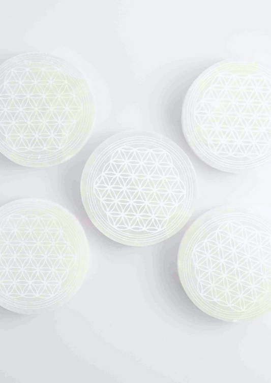 Selenite Flower of Life - Round PlateRegular price $22.00 USDRegular priceUnit price / per-