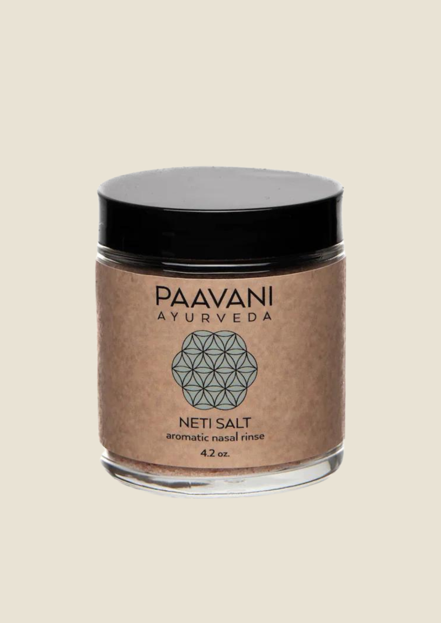 Scoop 1/4 tsp. Neti Salt into Neti Pot. Pour warm water that was distilled or boiled into the Neti Pot. Place the tip of the pot’s spout in one nostril. As you tip the pot, the saltwater solution enters the nasal passage & flows in one nostril and out the other. It is important to keep the mouth open & the head tilted. Mix more salt solution & repeat for the other nostril. Following neti, use PAAVANI Nose Oil to prevent dryness.