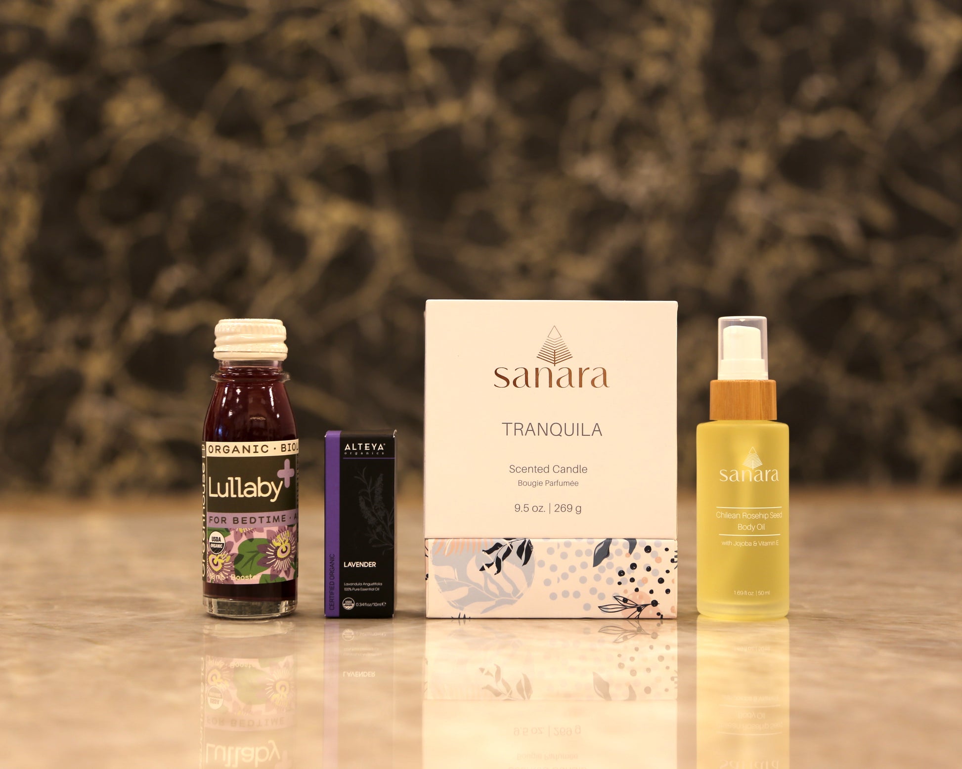 A luxurious wellness set curated to create a calming and soothing bedtime ritual.