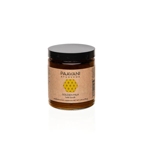 This golden tonic, called Haldi Doodh, is a traditional Ayurvedic recipe, which is an ancient Indian system of medicine. It's made with turmeric and spices, and is known for its calming and health-boosting properties. Turmeric helps cool down your body and aids digestion, while special herbs like Ashwagandha and Shatavari help your body recover and handle stress better. It's like a soothing, health-promoting drink that supports overall well-being.