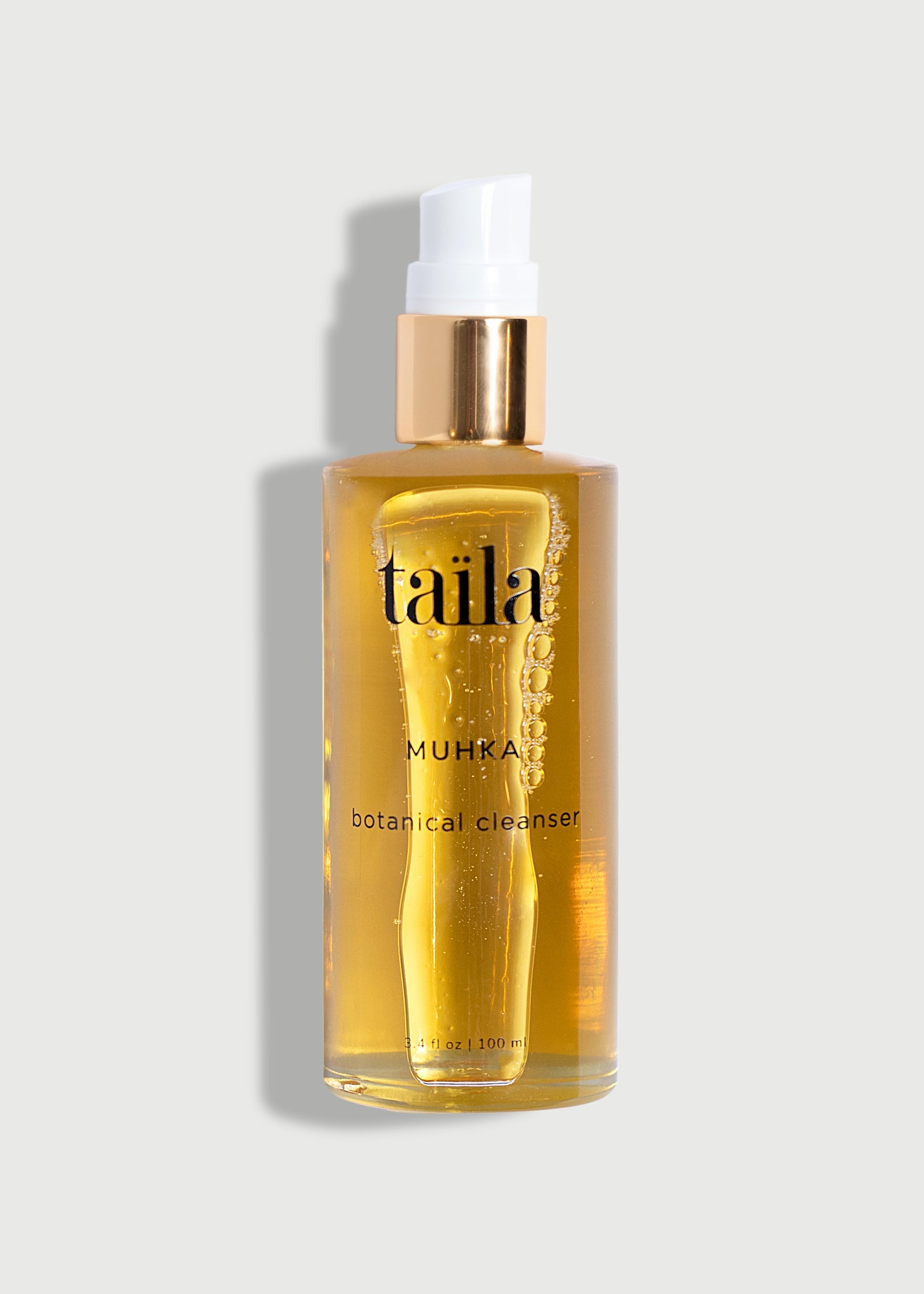 For a deep pore cleanse, apply MUHKA botanical cleanser and place a warm washcloth over your face. Allow steam to build for one minute then wipe off and rinse with warm water.
