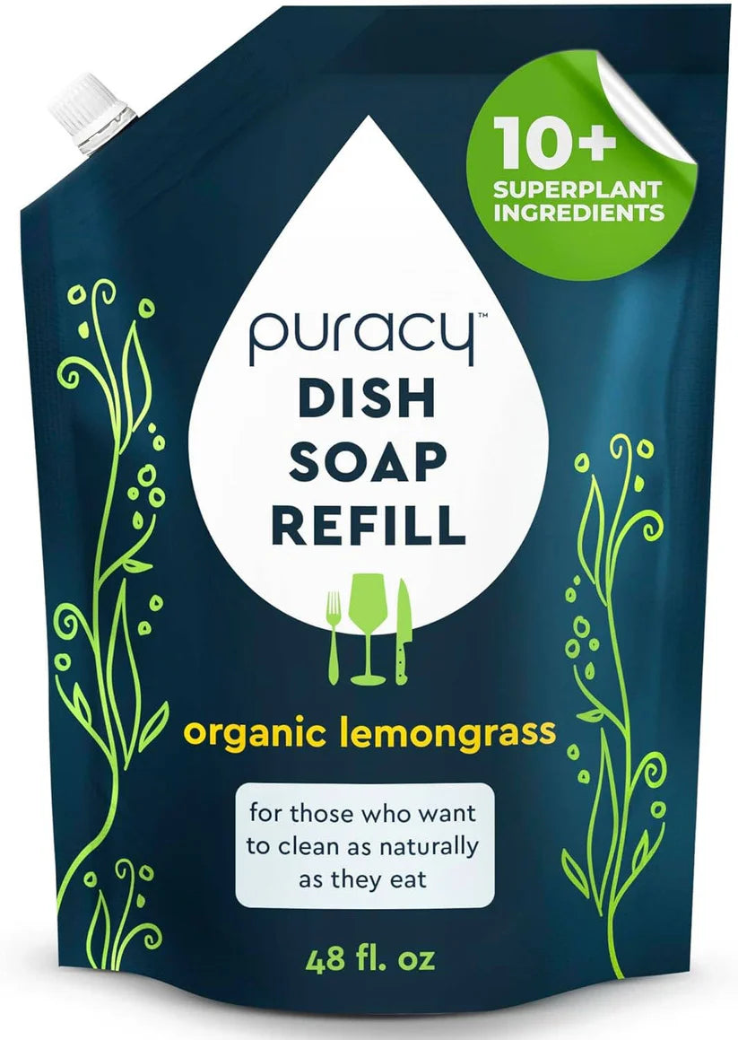 Puracy's Natural Dish Soap Refill is the #1 customer-rated dish soap offering a safe, eco-friendly cleaning solution with a natural fragrance and thicker concentration. This plant-derived formula is tough on grease while being gentle on your hands, making it perfect for cleaning dishes, baby bottles, toys, and more. With 160 sinks per bottle, it’s both efficient and economical. It’s free from harsh chemicals like sulfates, parabens, and triclosan, and is 99.41% natural, vegan, gluten-free, and hypoallergenic.