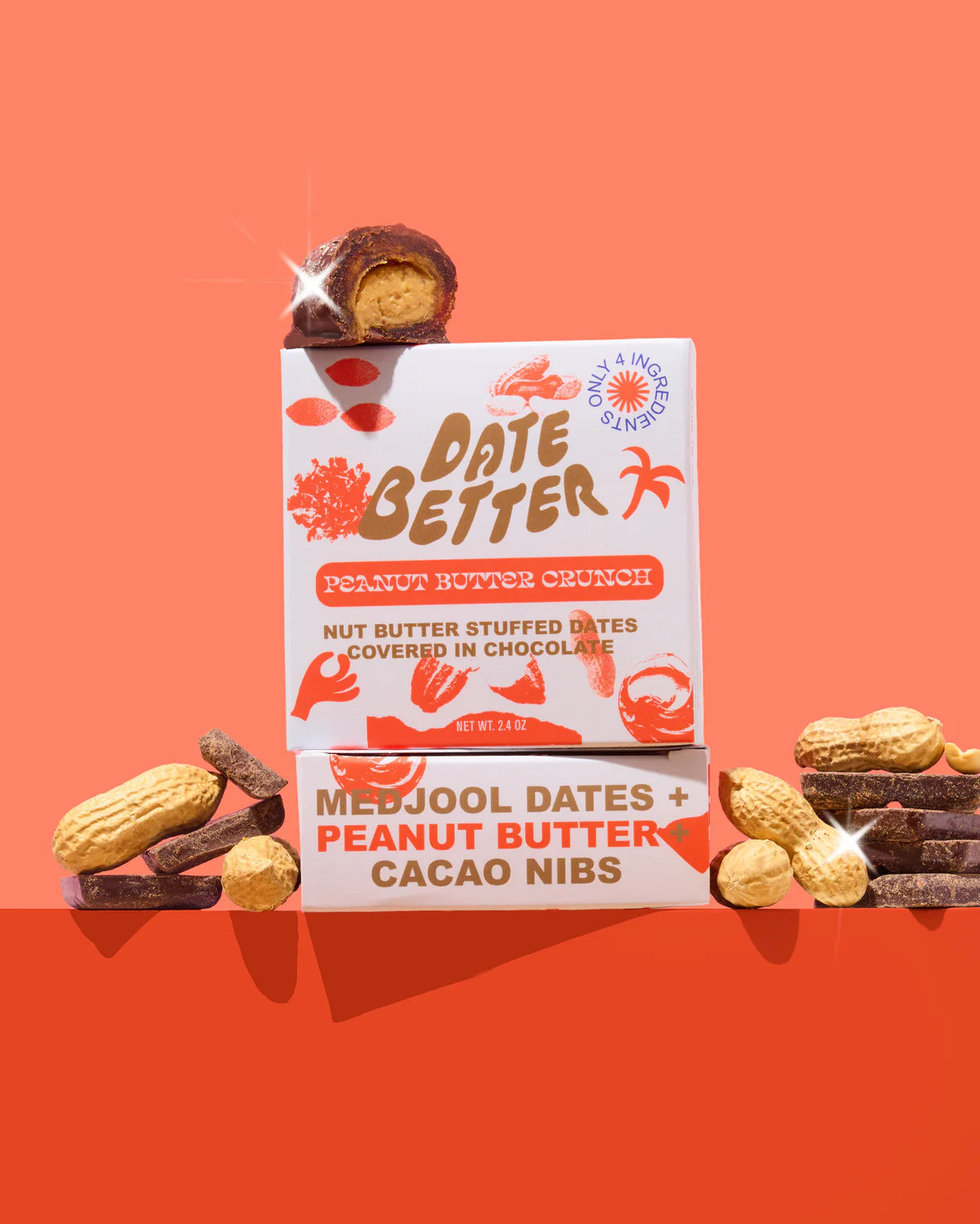 Peanut Butter Crunch is a timeless classic that won't let you down. Chewy Medjool dates are stuffed with thick natural peanut butter filling speckled with crunchy cacao nibs that are high in compounds that can increase the levels of the hormones serotonin and dopamine in your brain. They are then enrobed in organic, fair trade 85% dark chocolate that is free from any soy or emulsifiers. Need we say more?